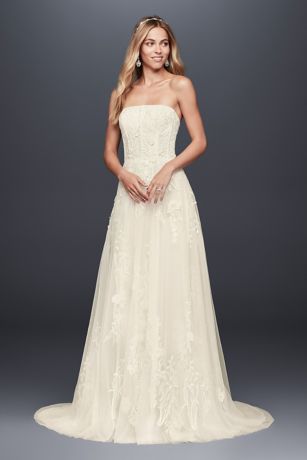 Classic A Line Strapless Curve Tulle Lace Plus Size Wedding Dress
