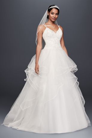 Embroidered Lace And Tiered Tulle Wedding Dress David S Bridal