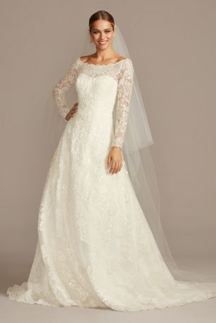 Petite Off The Shoulder Lace A Line Wedding Dress David S Bridal