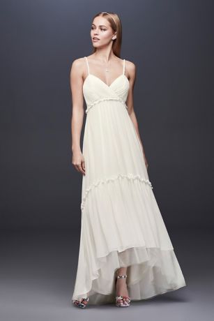 Short Beaded Strap Wedding Dress With High Low Hem David S Bridal